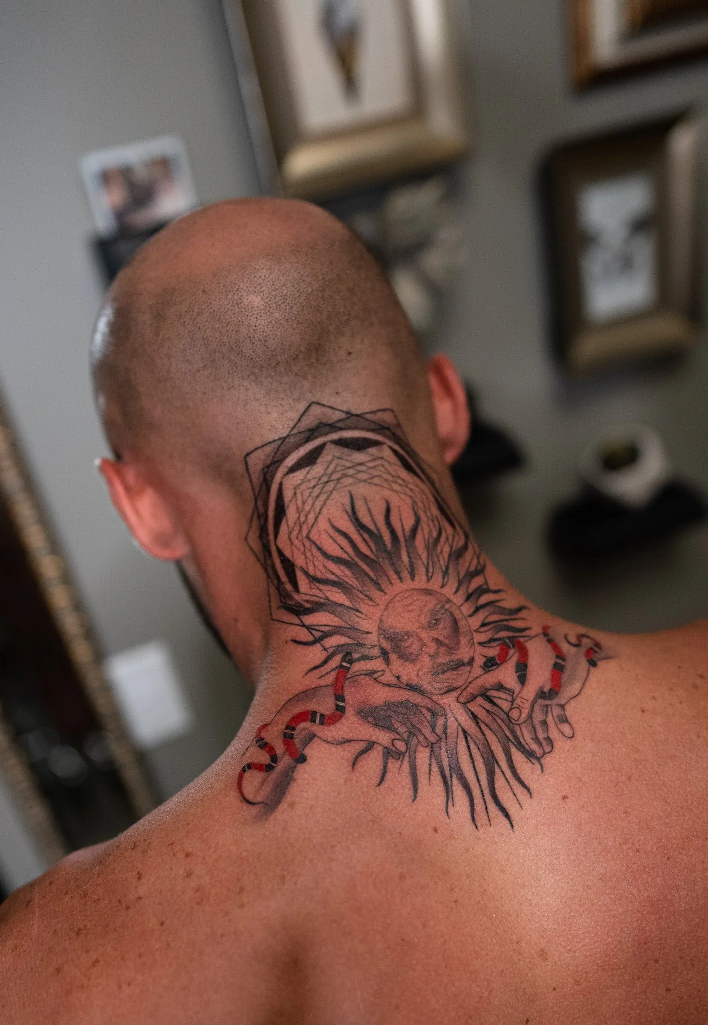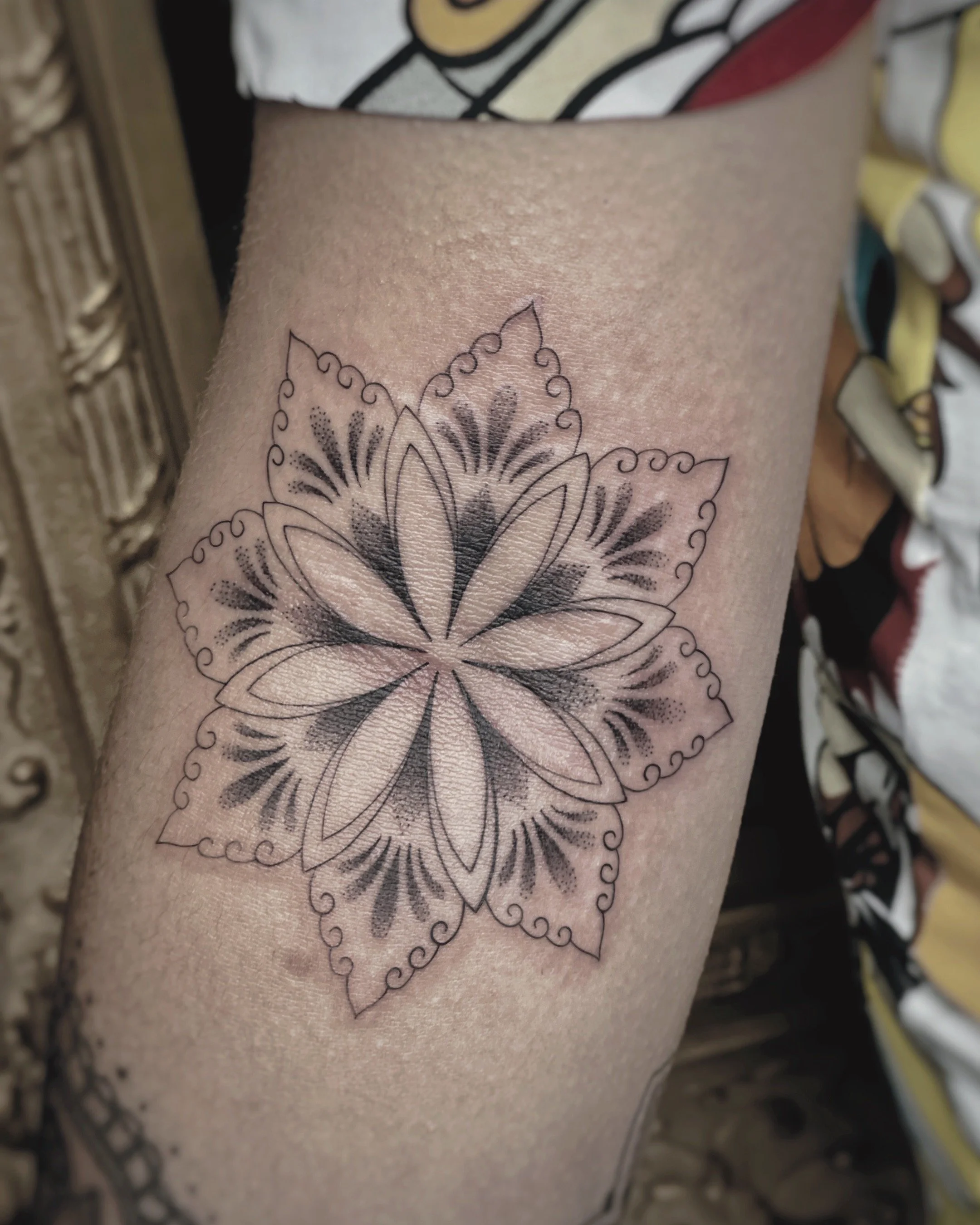 He specializes in fine lines, micro-realism, sacred geometry, and mandalas. All of his tattoos are custom for each client and showcase his clean line work and unique style.